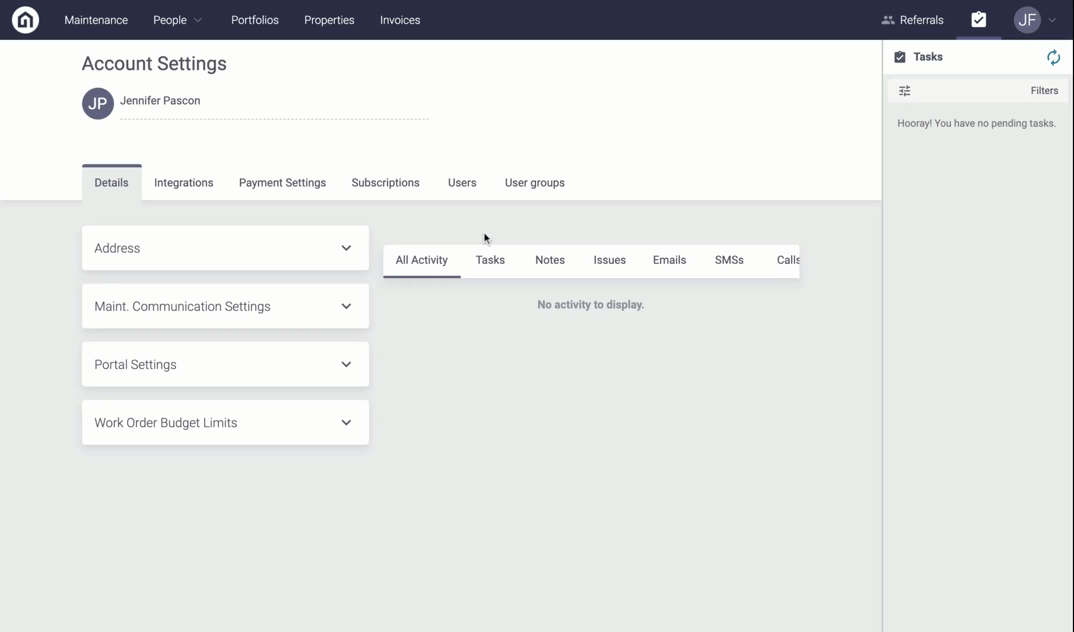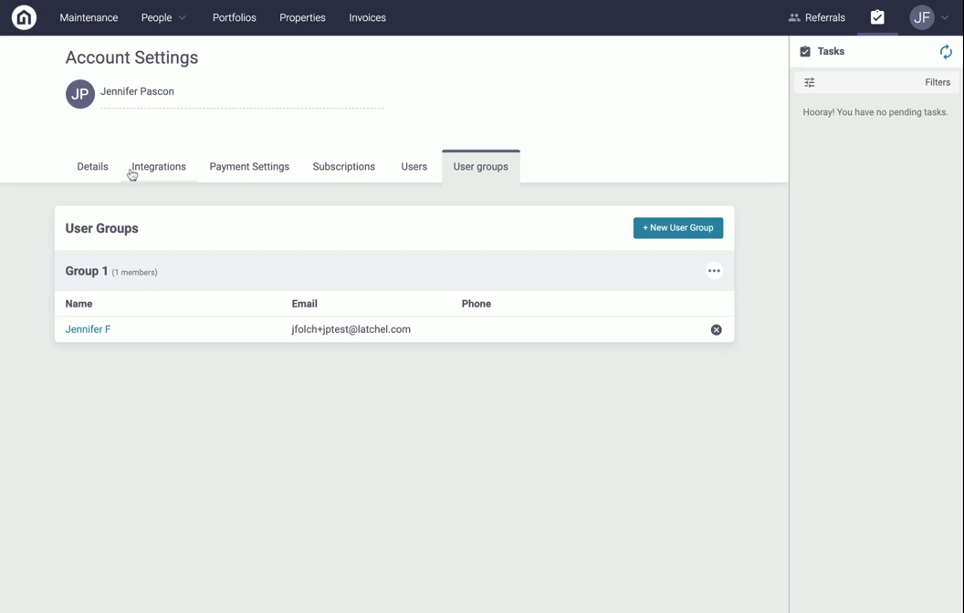 You may set the User Group to receive all of Latchel’s email notifications on your company profile, at the portfolio level, or at an individual property level.