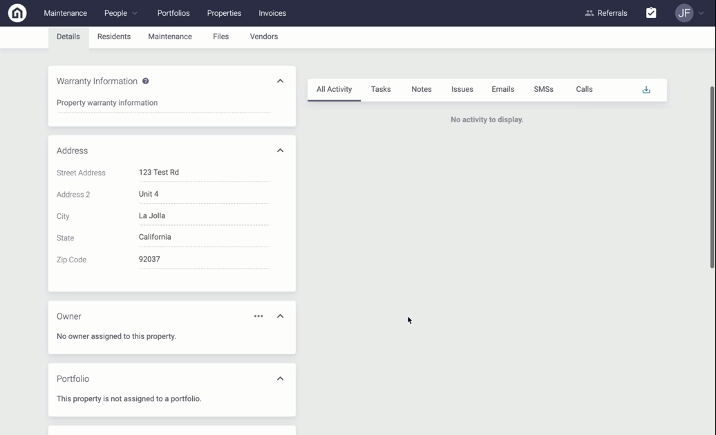 Step 3. On the Details page, scroll down to the Maintenance Communication Settings. From here, you will see the property inherited from the Portfolio Level User Group. To override this, click override and then select the User Group dropdown under the Default Notification User Group field. Click Save