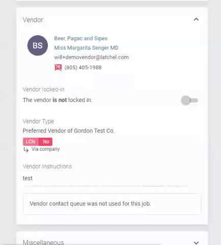 Step 1) From the Vendor Modal on a Work Order, toggle Vendor Lock-in ON. The toggle should be blue and positioned to the right.